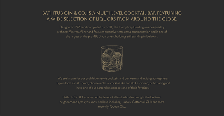 🧠 CHALLENGE: Bathtub Gin is known for prohibition-style cocktails and its speak-easy environment. They had an out of date website with a menu that was "incredibly difficult to navigate". The branding on the old site did not match the establishments in-person feel.